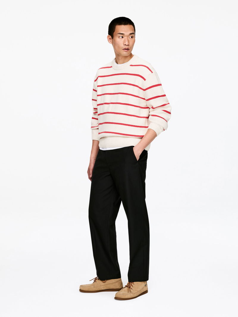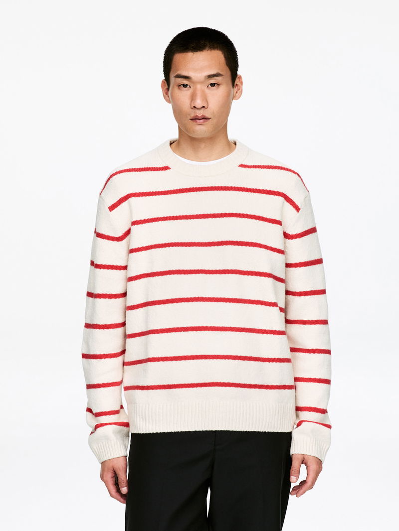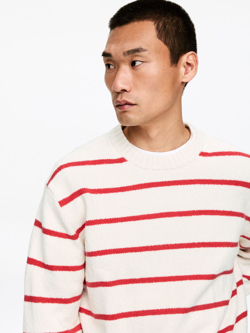 Plain-knitted in a cotton blend, this jumper features a pattern of yarn-dyed stripes. A crew-neck style designed for a relaxed fit with dropped shoulders. Finished with rib-knitted neckline, cuffs and hemline.