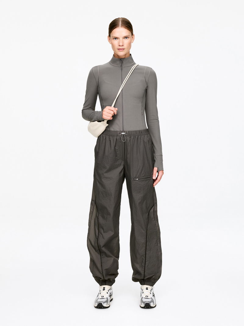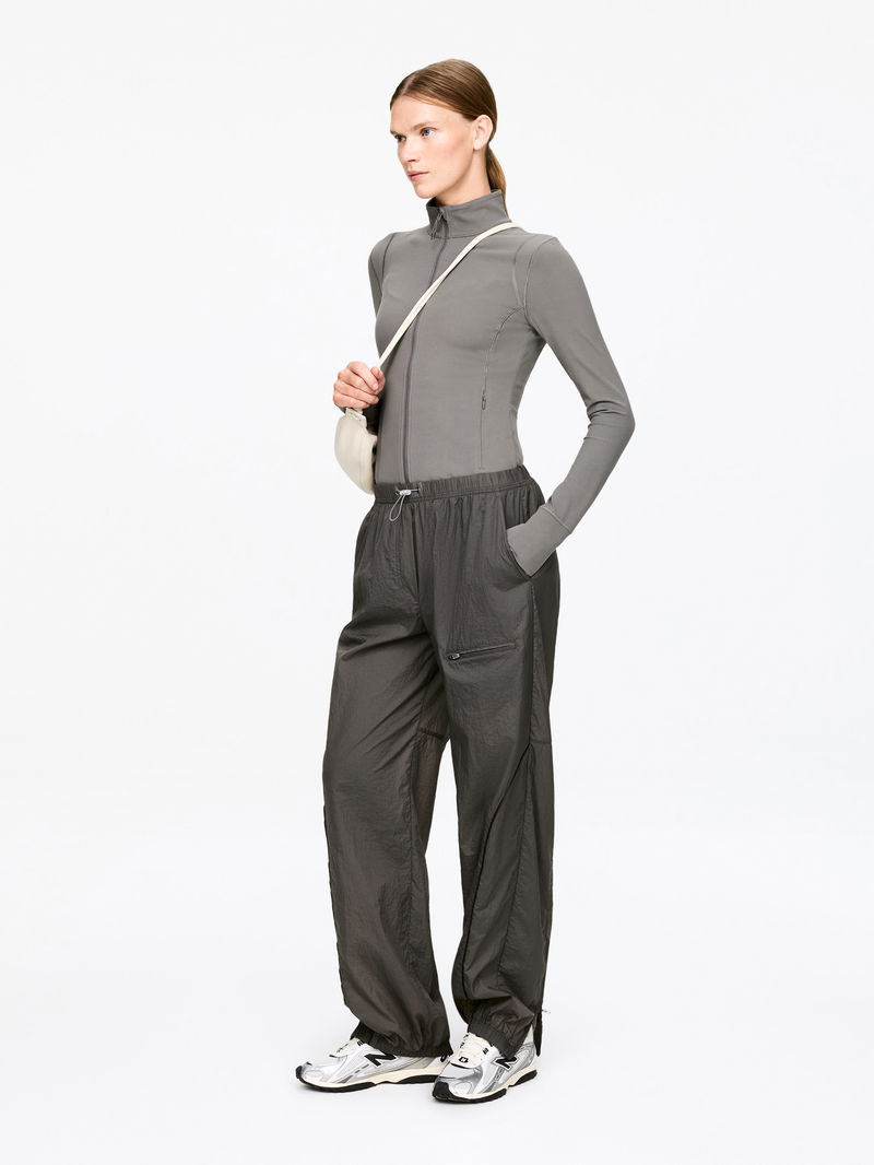 These ripstop trousers are designed with a drawstring waist and drawstring hems, offering comfort in a lightly sheer finish.