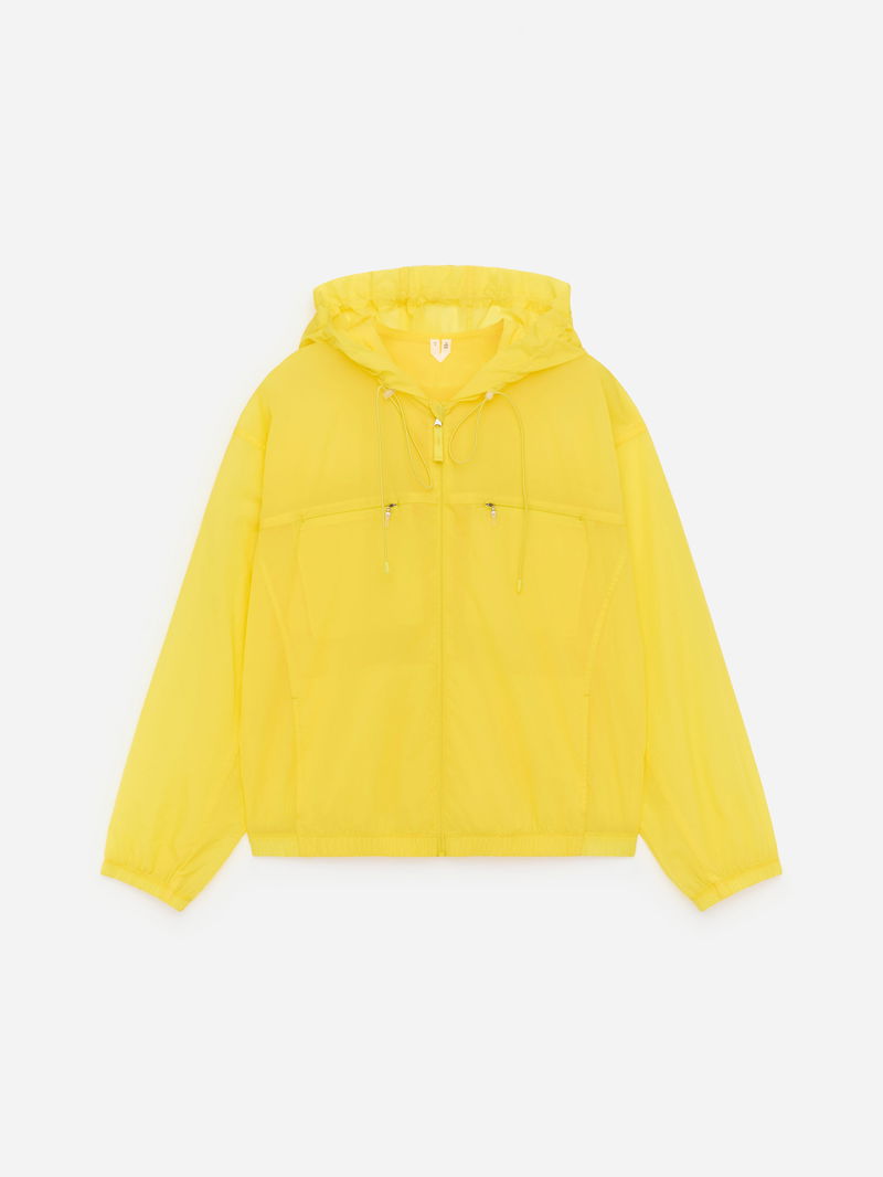 This hooded windbreaker is crafted from lightweight ripstop fabric and features soft elastic at the hem and cuffs. Detailed with hidden chest pockets for a clean finish.
