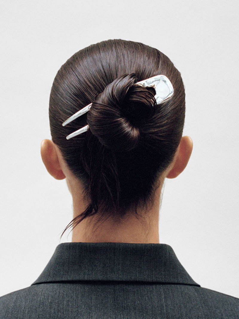 Sculptural hair pin crafted from zinc.