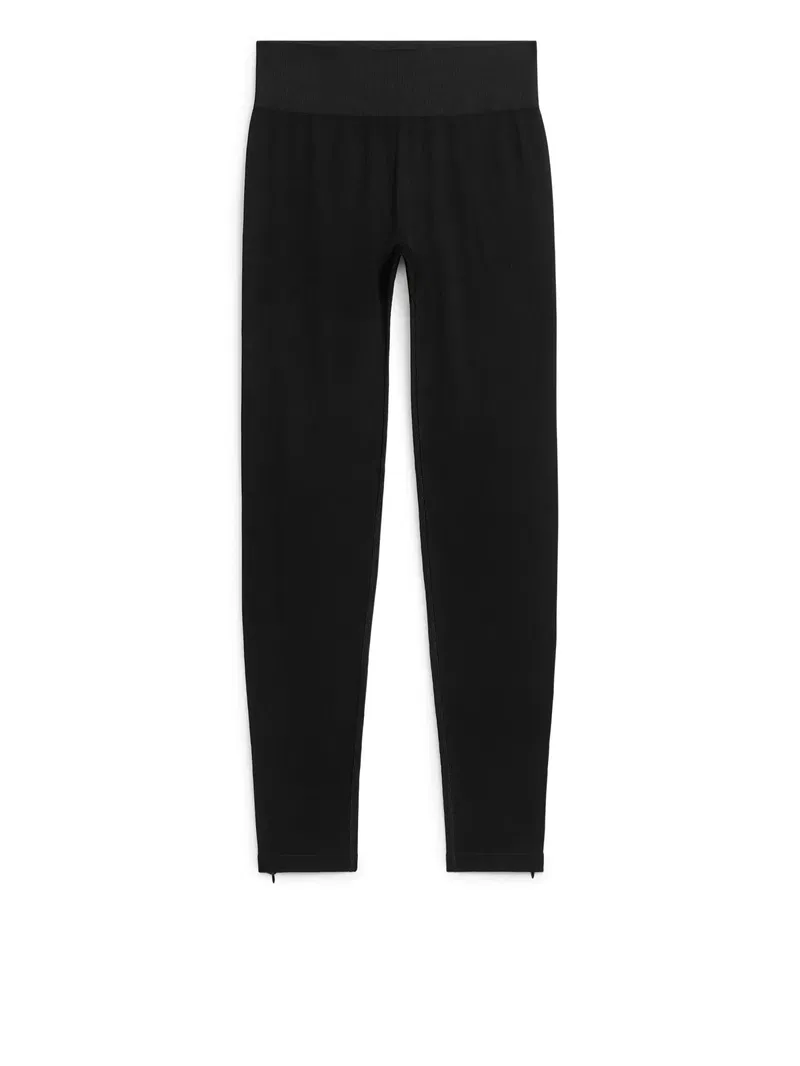 Seamless, rib-knitted leggings made from a stretchy blend of recycled and virgin polyamide. Elasticated waist and short zip at end of leg.
