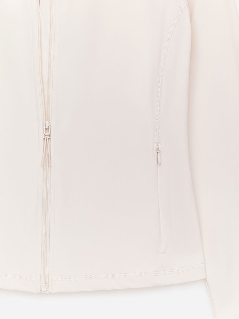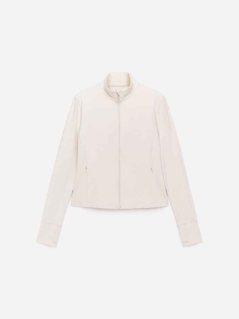 Soft and comfortable, this long-sleeved zip-up jacket features a double-layered stand collar and thumbhole cuffs. Includes zip pockets for secure storage. Slim fit.