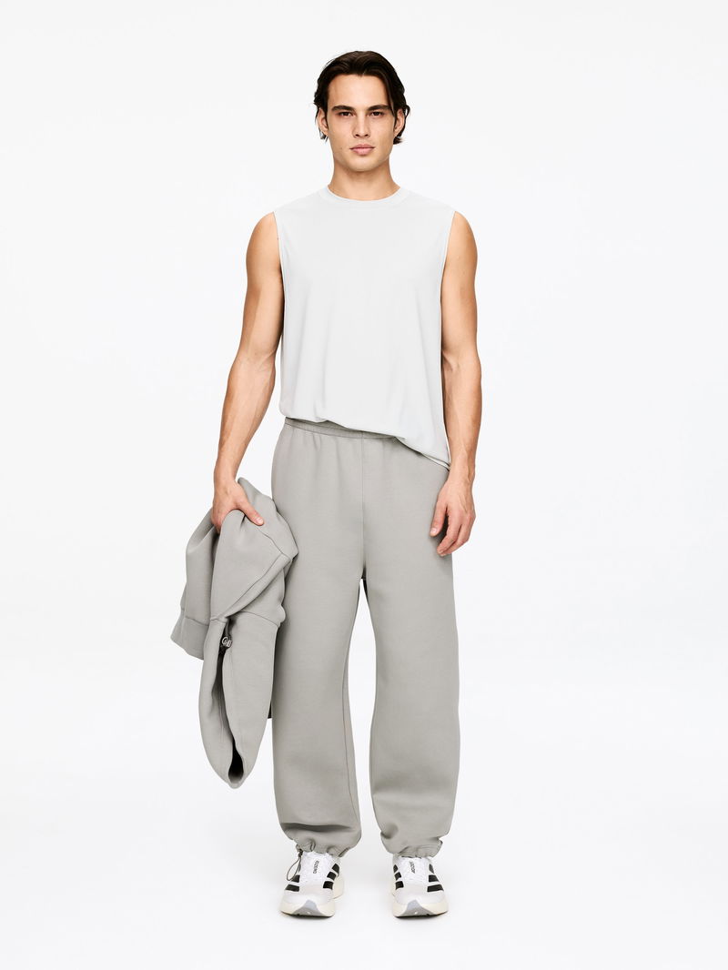 Crafted from a sturdy cotton blend, these sweatpants are cut for a regular fit. A pull-on style with an elasticated waistband and pockets at side seams. Straight-cut legs with drawstring and adjusters at bottom hemline for easy adjustment of width.