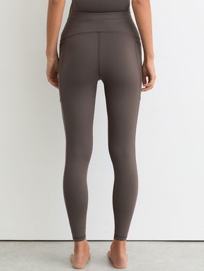 Stirrup leggings with elastics at waist. A slim-fit style made from a stretchy nylon jersey blend. Detailed with narrow babylock seams at trims.