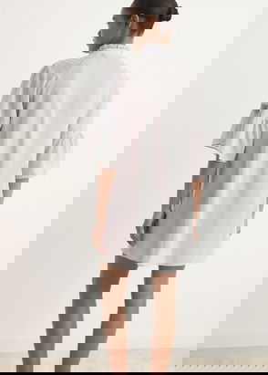 White and blue stripes give a classic feel to this knee-skimming night shirt featuring elegant piping trimmings and a button-up design.