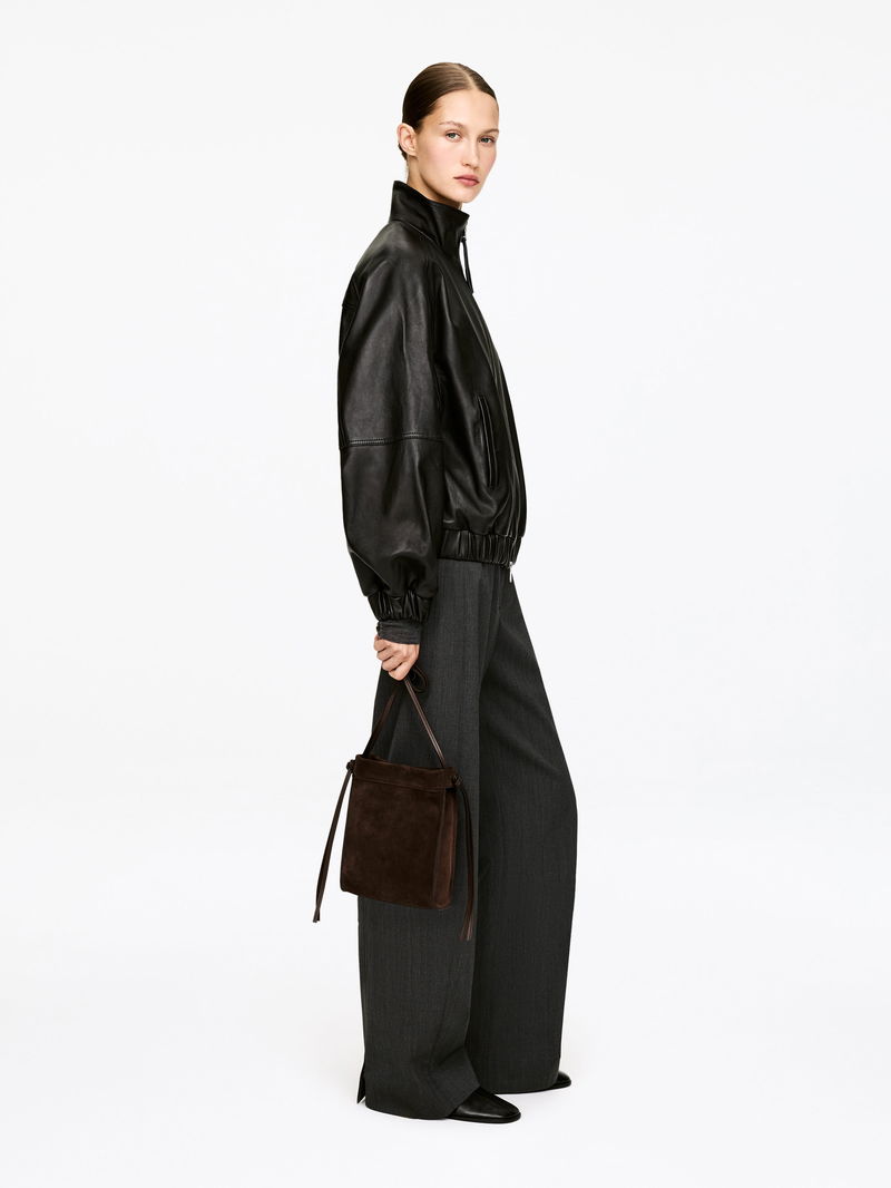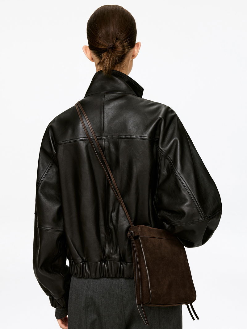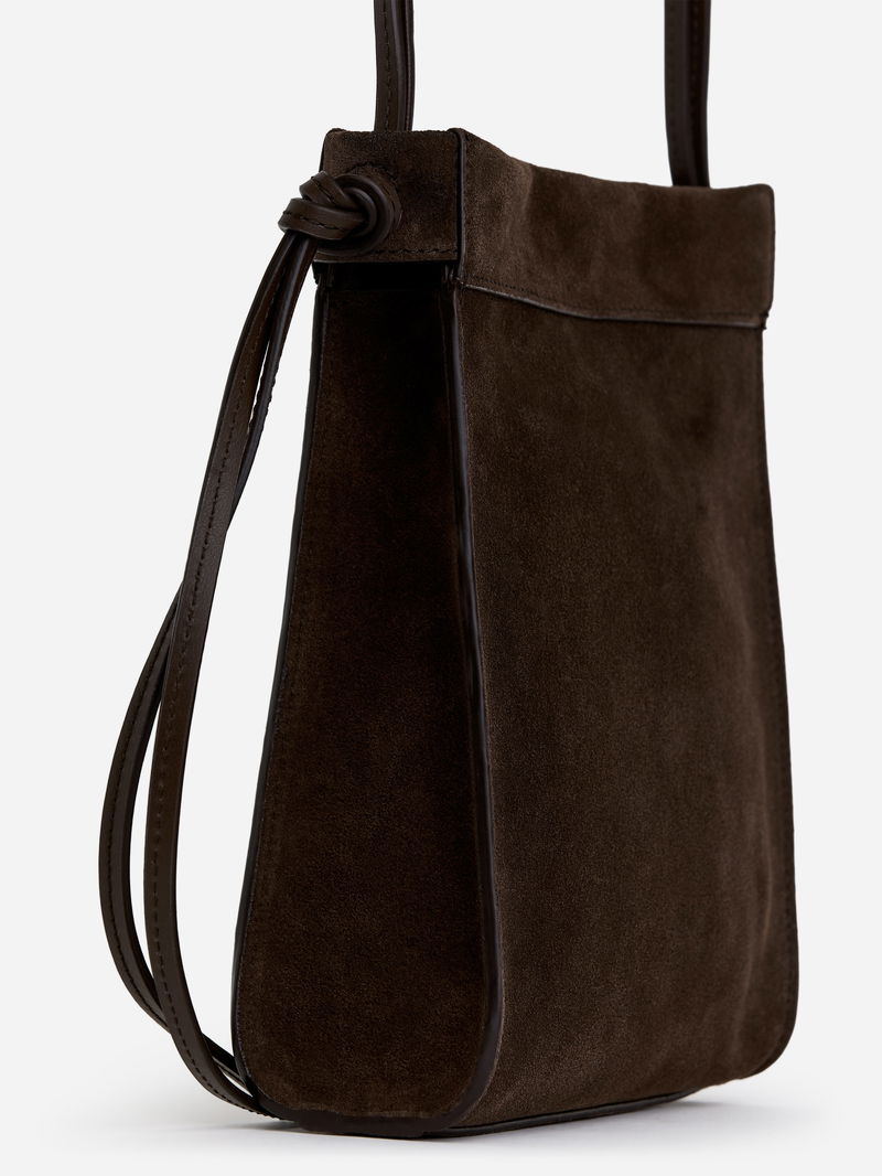 A refined suede crossbody bag with leather detailing, perfectly sized for everyday essentials.