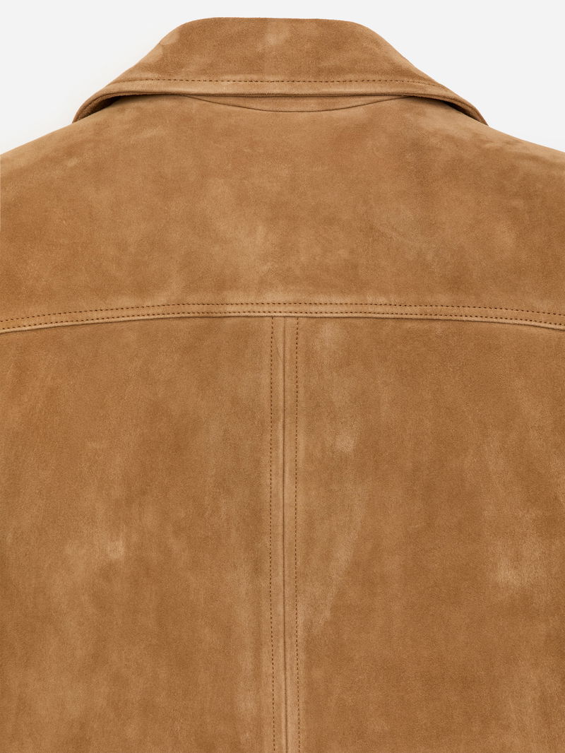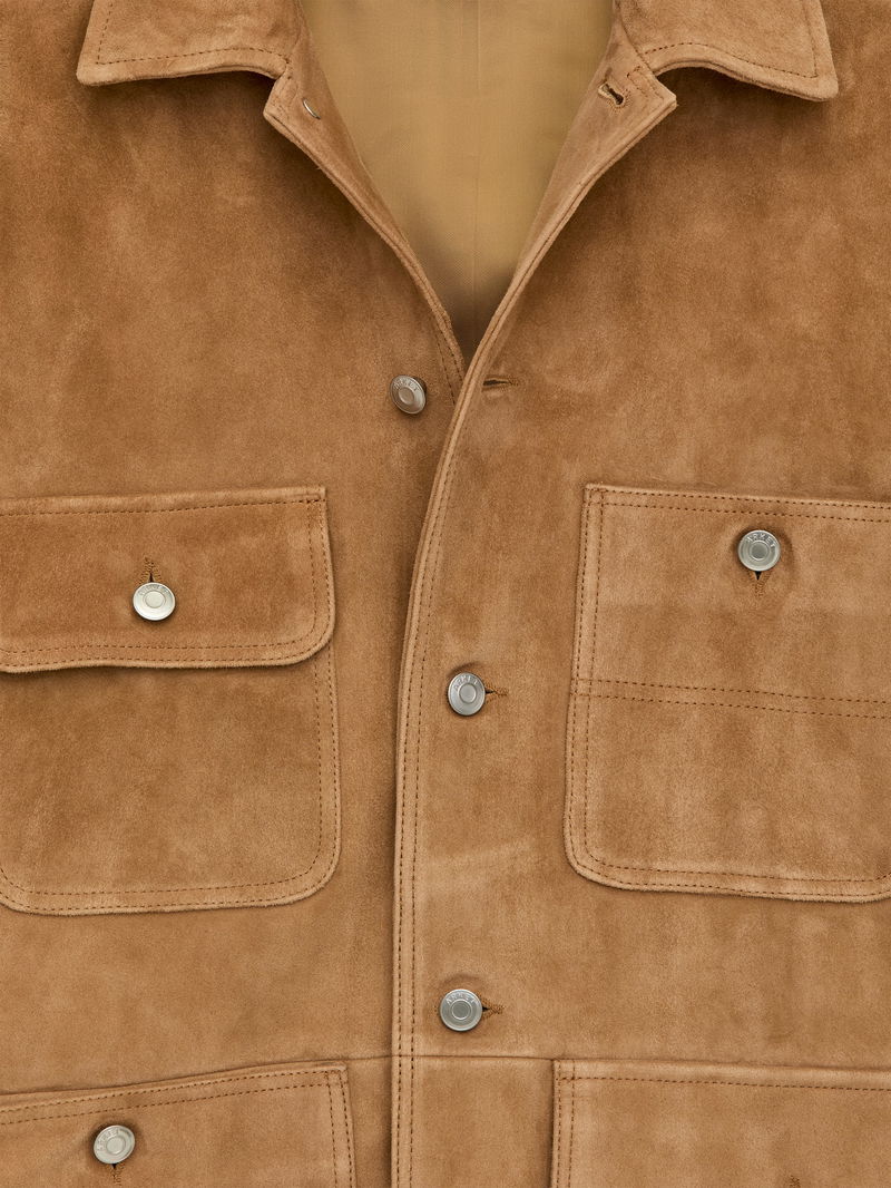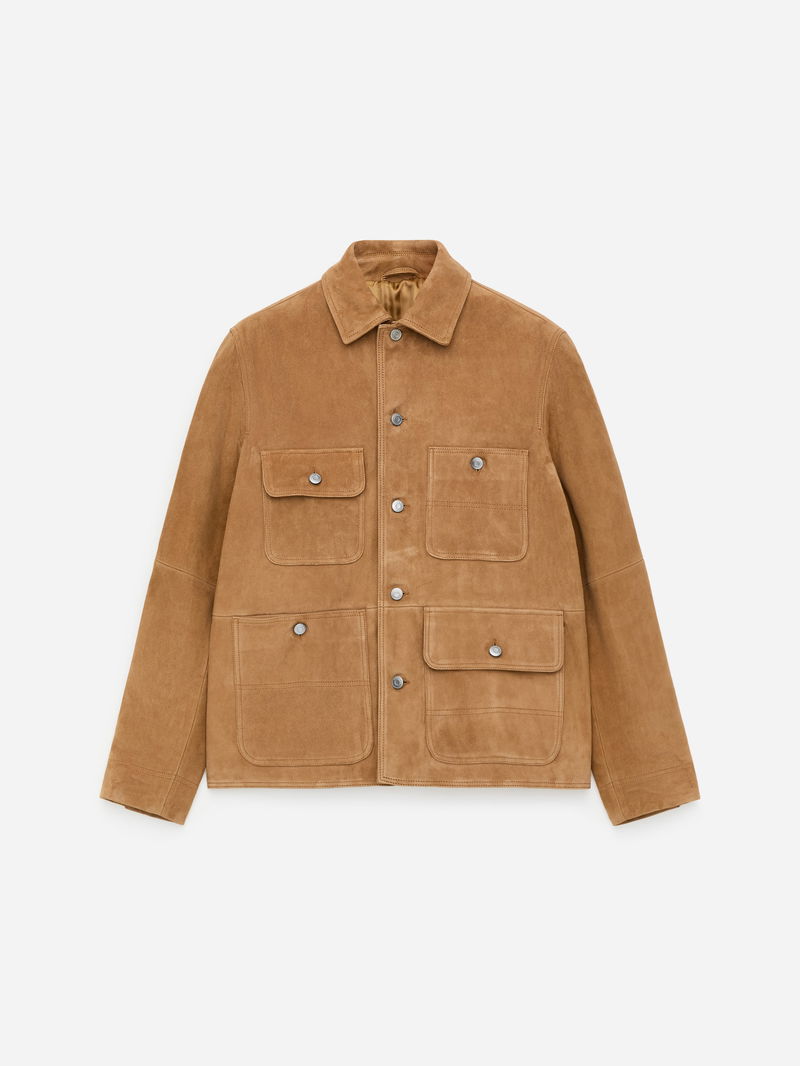 A playful pocket design — some with flaps and some without — adds a subtle twist to this otherwise classic suede jacket. It is cut for a regular fit and styled with a collar, shank buttoning and a back yoke. Slits with shank buttons at end of sleeves. Fully lined.