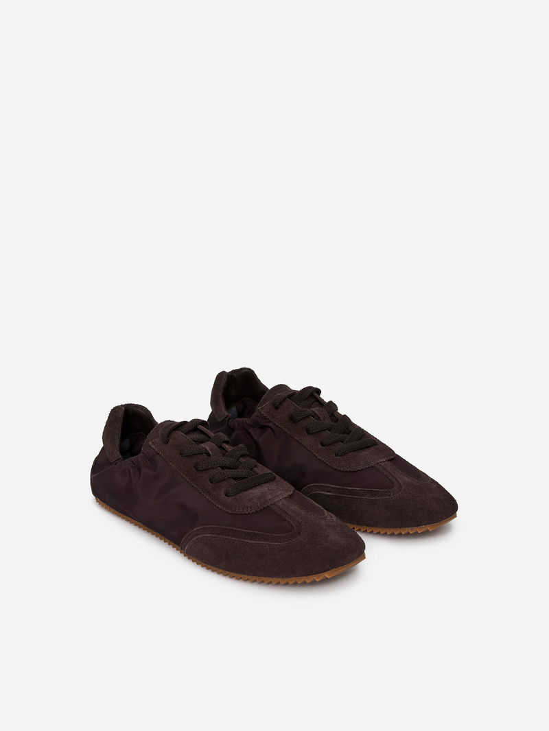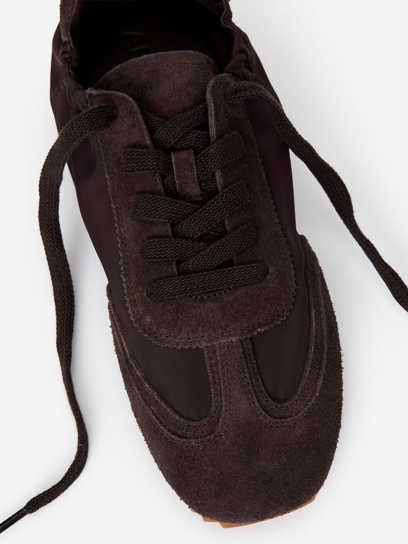 Retro-inspired trainers crafted from suede and nylon, featuring lace-up fastening and an elasticated ankle for easy dressing. Finished with topstitch detailing.