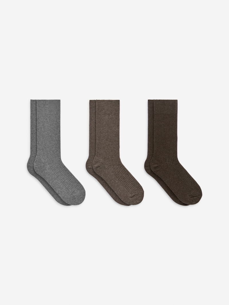Classic rib-knitted socks made from a high-quality supima cotton blend. Reinforced toe and heel. Sold in set of 3 pairs.