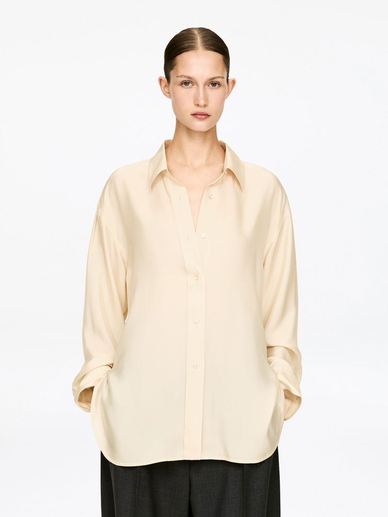 Shirt in soft, drapey cellulose acetate with a relaxed fit and an elongated shirt tail.