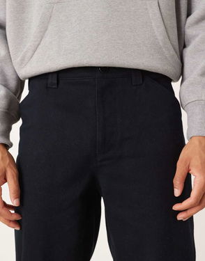Cotton trousers crafted from a slub twill with a peachy finish. Cut for a relaxed fit with wide, straight legs. Detailed with side pockets and jetted pockets with button closure at the back. Belt loops, zip, hook and bar closure.