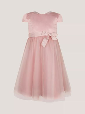 Short-sleeved dress crafted from double layers of tulle and Lurex for a glittering effect. Gatherings at body and at top of sleeves. Raw edges at end of sleeves and bottom hem.