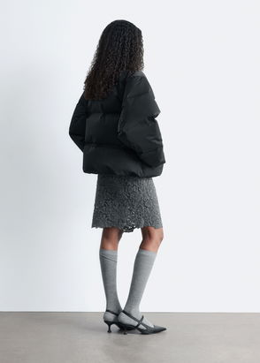 Puffer jacket filled with a blend of down and feathers. Features a stand collar, zip fastening at the front, and welt pockets with zip closures. Drawstring with metal stopper at the hem. The Upcycled Down products are filled with recycled down and feathers sourced from Re:Down®. These materials, collected from used textiles, are washed and sterilised at high temperatures without the use of chemicals.