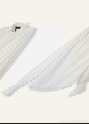 Crafted from a crisp cotton weave this pull-over shirt is designed with a V-neck and and voluminous sleeves. Gatherings underneath the back yoke gives extra volume to the silhouette. Rounded hemline, slightly longer at the back.