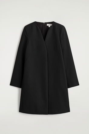 Short tunic dress crafted from a double-face wool-lyocell fabric. Slit opening at neckline and long batwing sleeves. Loose fit.