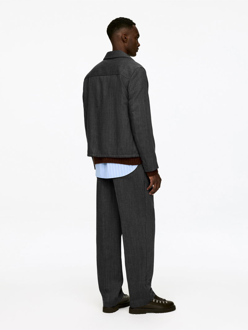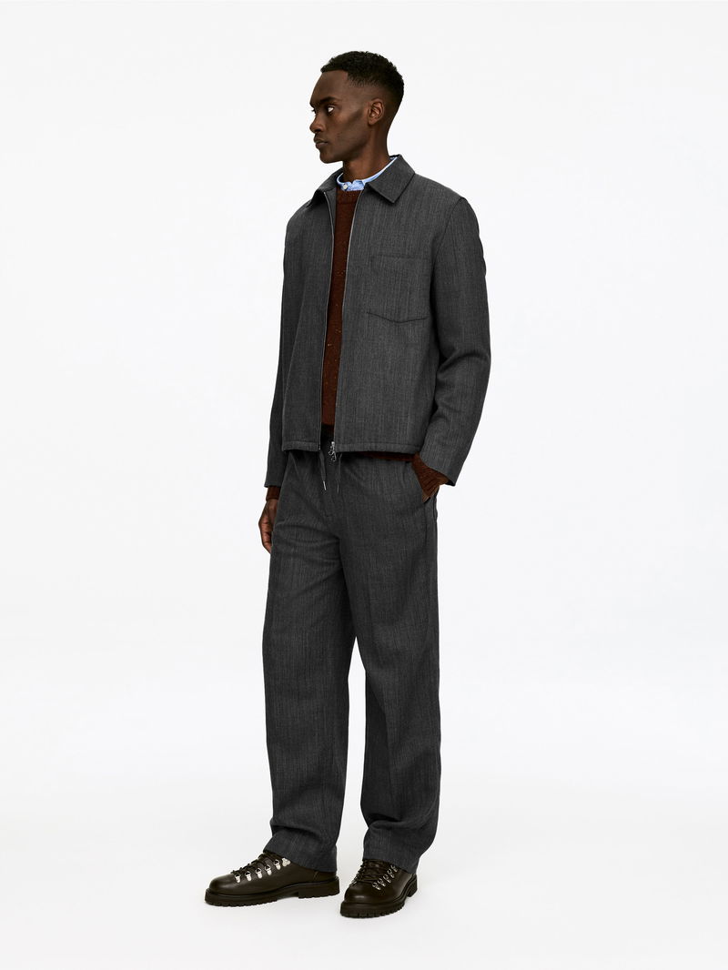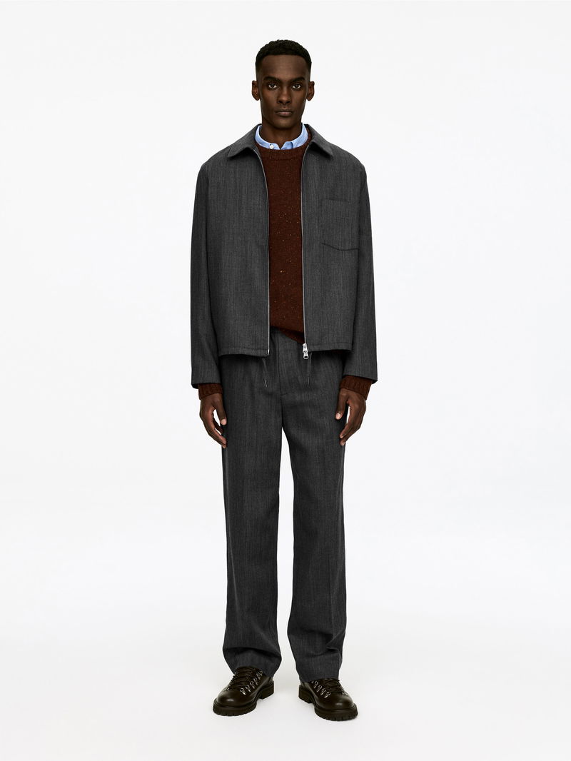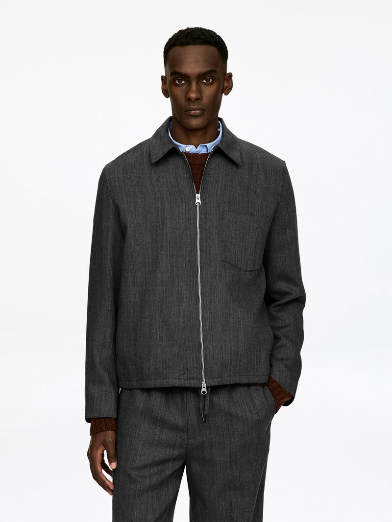 Tailored jacket made from wool. Cut for a regular fit, the jacket is styled with a classic collar and a two-way zip at front. Pockets at side seams. Chest pocket and back yoke is made of shell fabric but cut in a contrasting direction. Inner drawstring at bottom hemline.