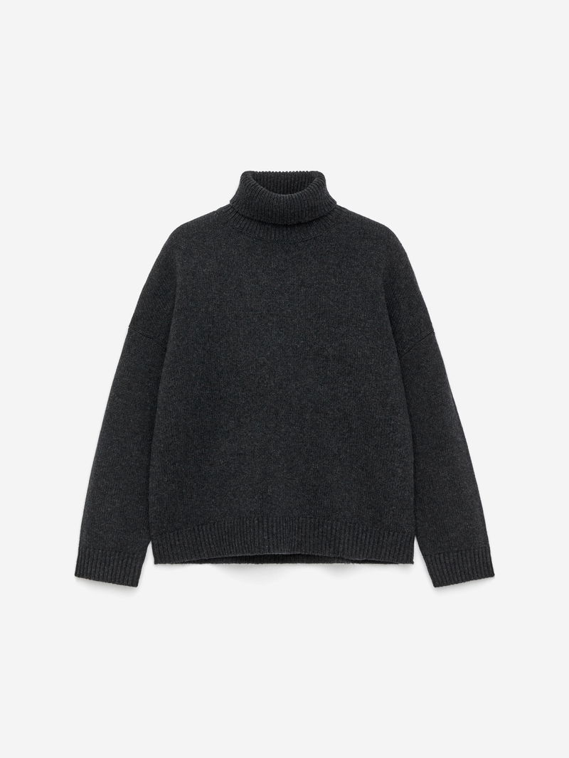 Roll-neck crafted from pure wool, designed for a relaxed fit and finished with ribbed trims.