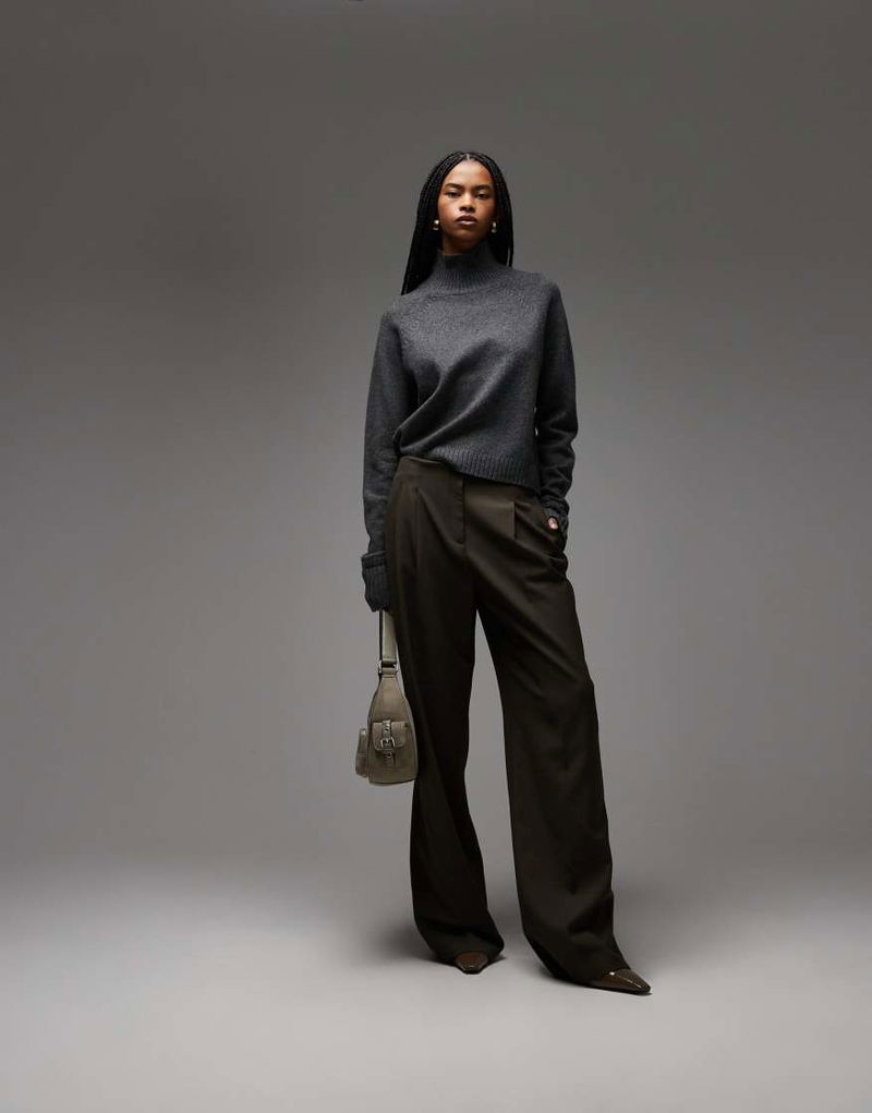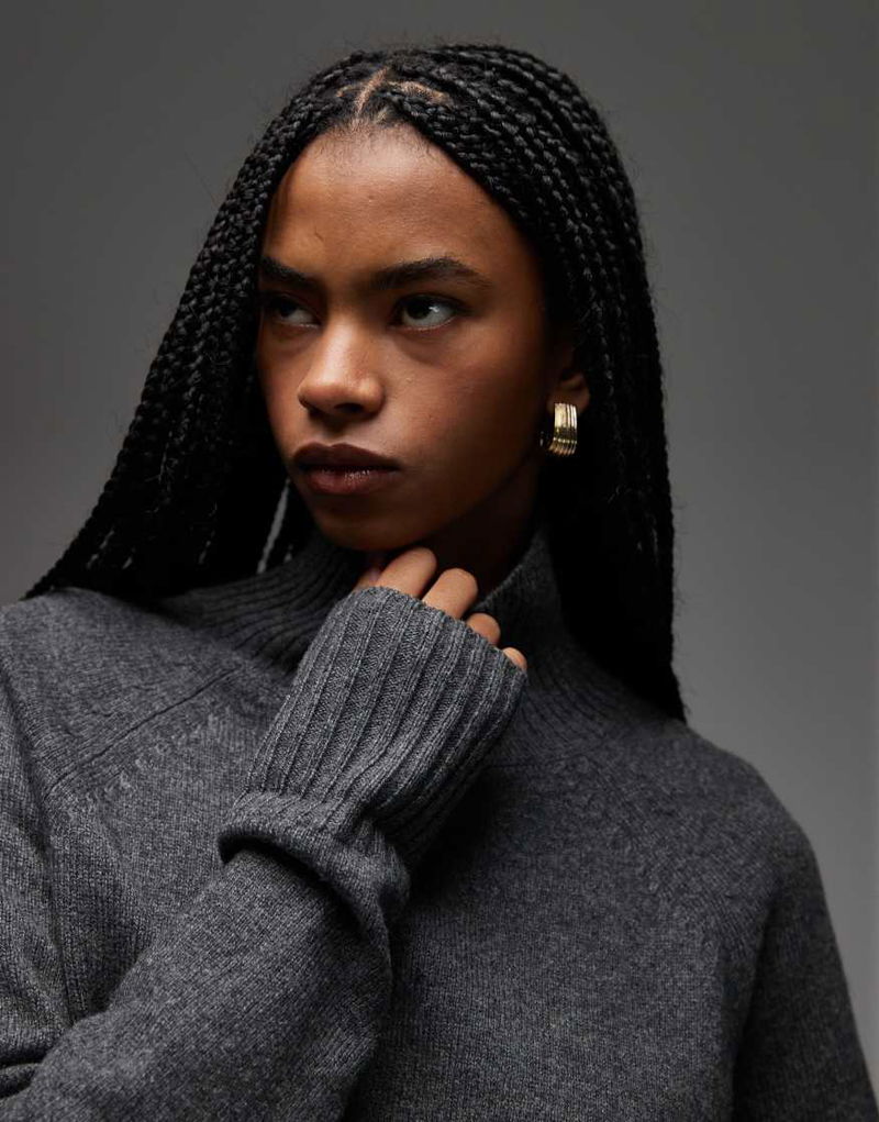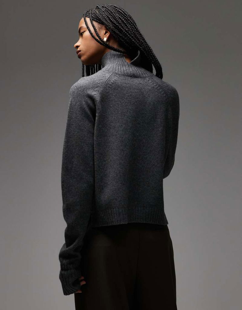 Wool Sweater With High Neck And Deep Cuffs In Dark Grey
