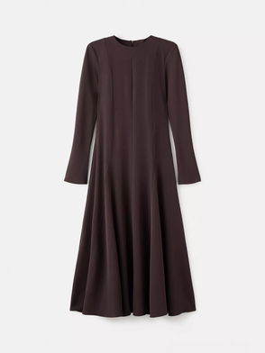 Full-length tunic dress crafted from a wool blend. Styled with a split neck, batwing sleeves with slim cuffs and slit at sides.