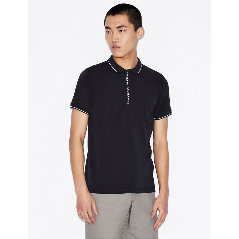 The Armani Exchange Chest Stripe Cotton Polo Shirt offers urban style with everyday comfort.