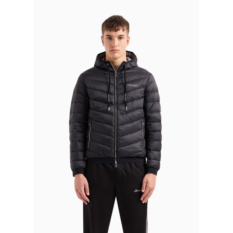 Armani Exchange Giacca Piumino Water Resistant Puffer Jacket delivers practical winter protection with style. The water-resistant shell features a drawstring hood and two-way zip closure, while lightweight insulation provides warmth without bulk. Elasticated trims ensure a comfortable fit. This coat offers reliable performance for everyday wear.