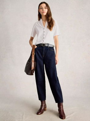 Classic collar. Button-down closure. Long sleeves. Back metal plate logo. Soft touch.