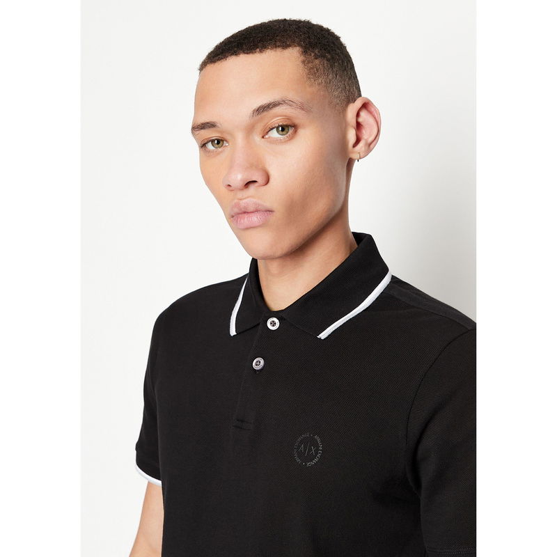 Armani Exchange Tipped Pique Polo Shirt Update your smart-casual attire with this Tipped Pique Polo Shirt brought to you by Armani Exchange. Crafted in a soft pure cotton fabrication, this timeless silhouette features a polo neck, two button placket, short sleeves, a straight hem and ribbed trims to the neck and sleeve for comfort.