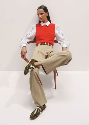 The Knitted Jumper Vest from Armani Exchange offers sleek styling potential with modern proportions. This sleeveless pullover design features clean lines and a tailored cut that creates a piece transitioning seamlessly from casual to more dressed-up looks.
