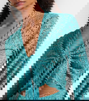 This yellow crop top from Asceno features a dynamic ocean reef print in a contrasting brown. Made from pure silk, the design comes with spaghetti straps and snap button fastenings.