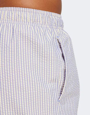 Sartorial stripe swim shorts for a preppy, cool aesthetic.