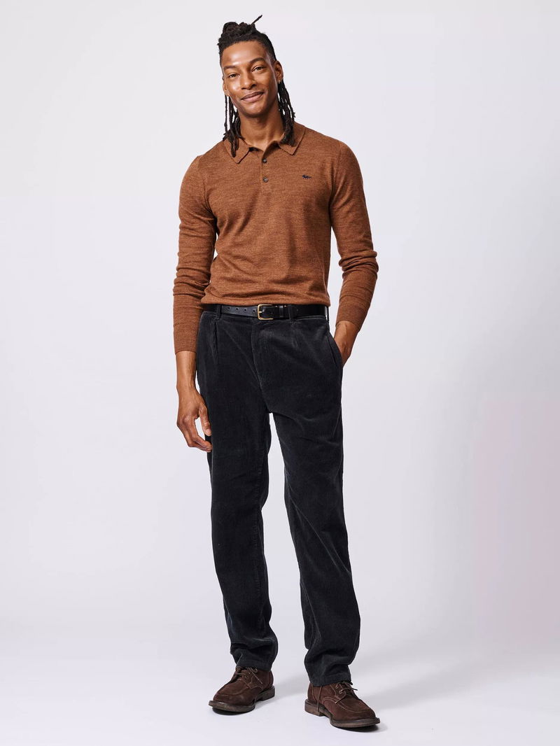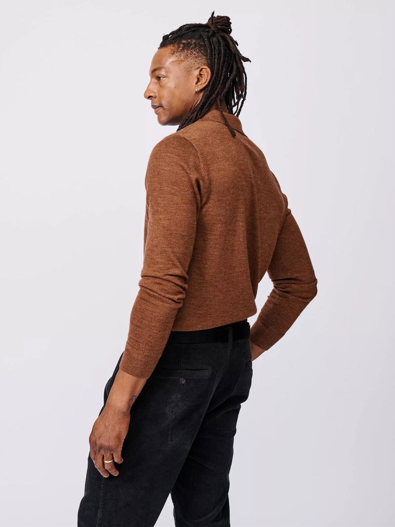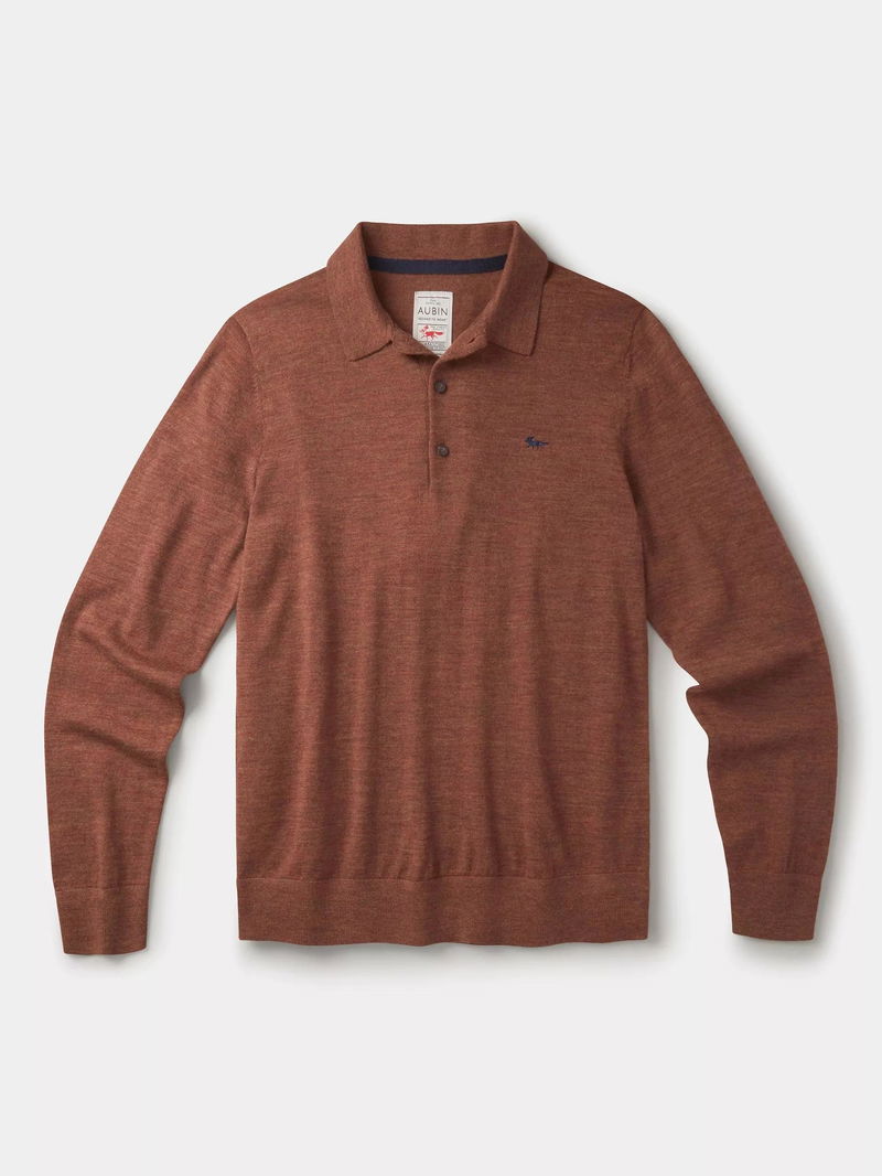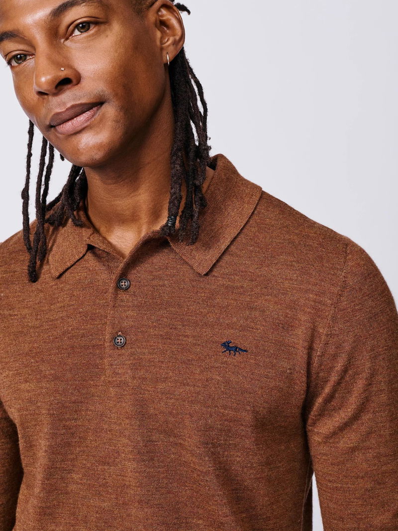 Chapel Extra Fine Knit Merino Wool Long Sleeve Polo Shirt, Rust