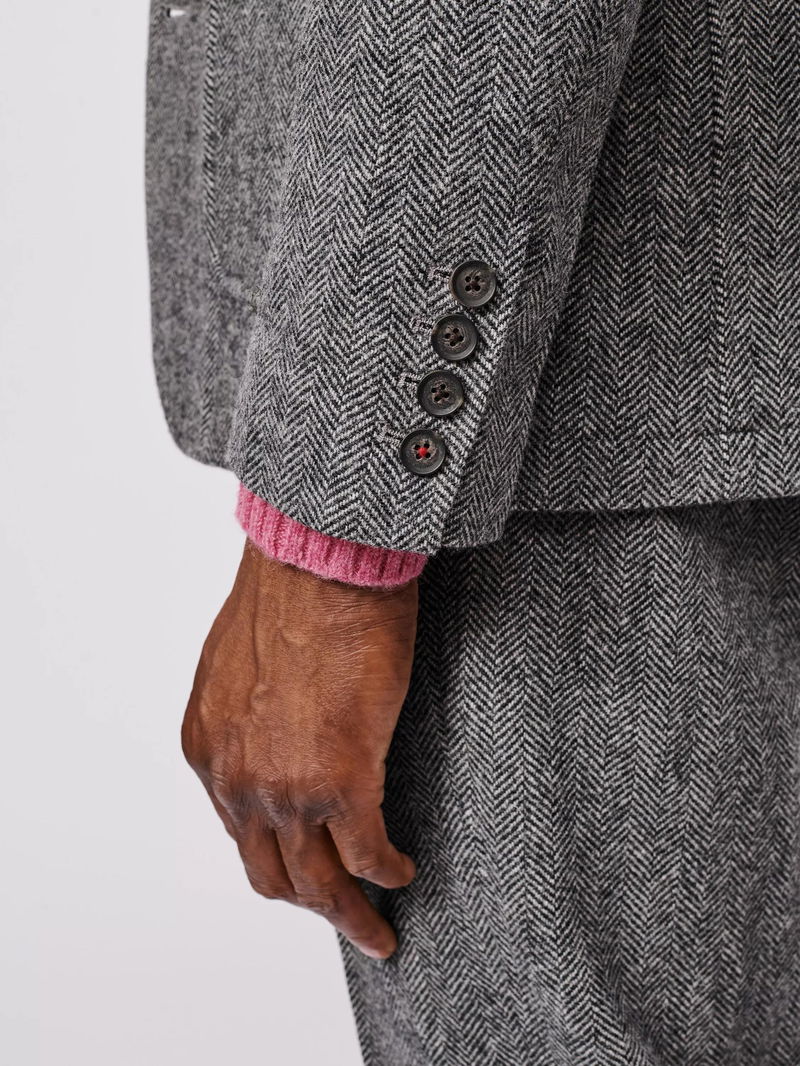 Chunky wool suit blazer which makes a style statement as a suit combination. With a front pocket and double side pockets.