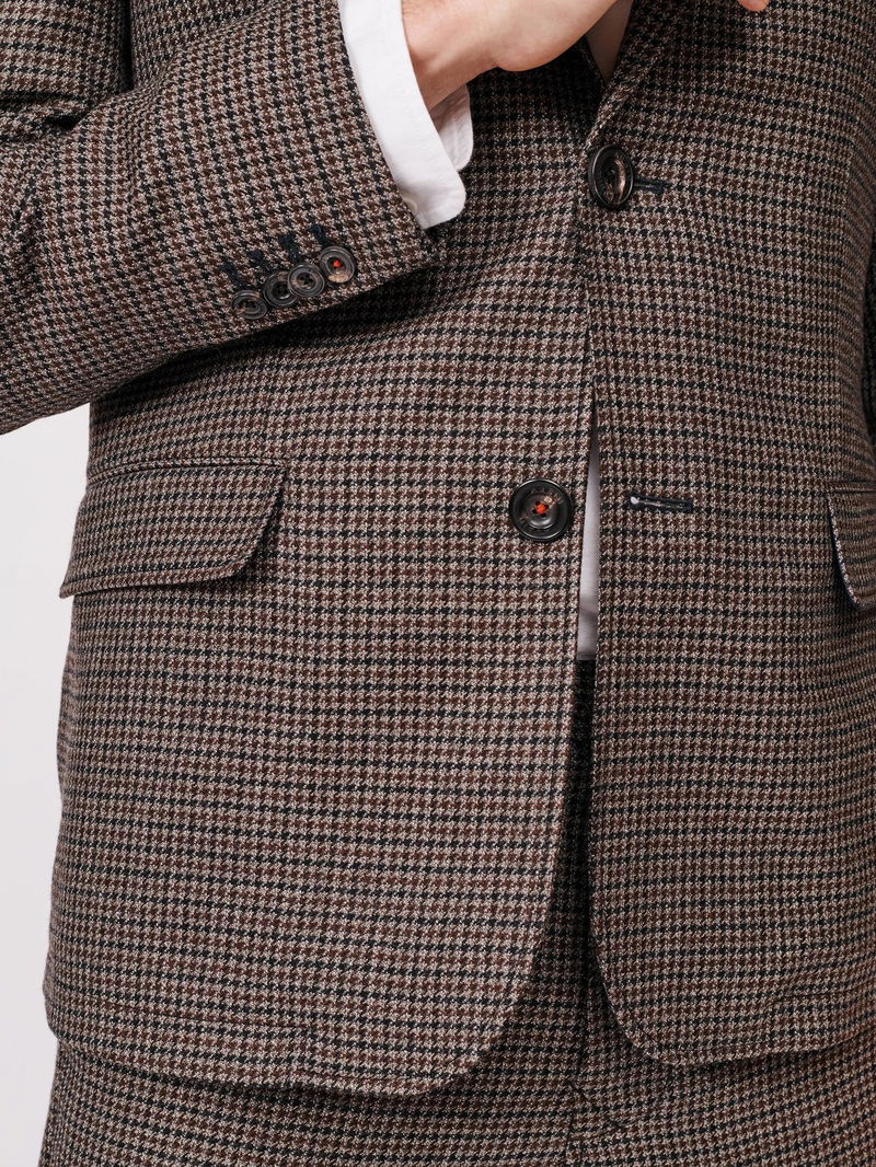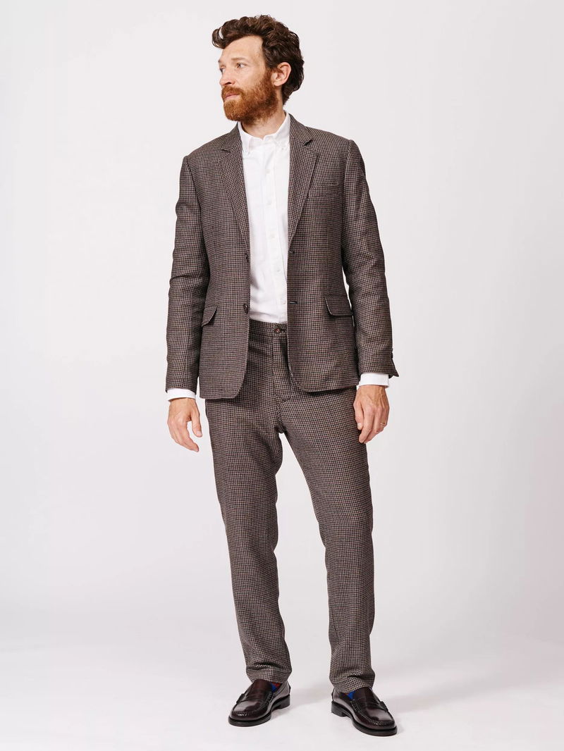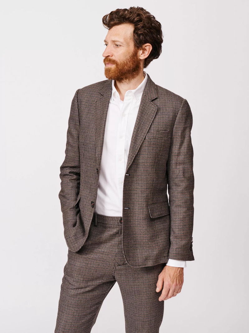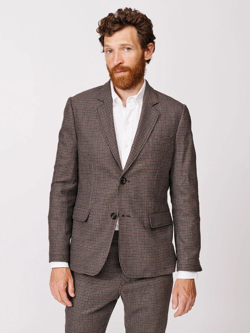The Pasmore blazer represents classic tailoring and casual styling. It features a very soft construction, with a small shoulder pad and light fusing through the front. This wool version has a two-button fastening with a soft, curved sweep at the front. Fully lined with piping detail and an internal pocket, this piece features flap hip pockets and functioning cuff buttons. Pair with the Pasmore trousers in the matching heritage weave fabric.