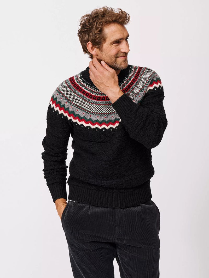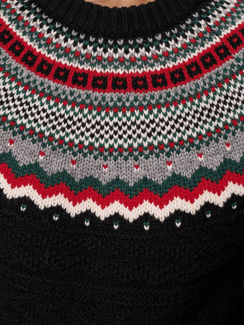 Placement Fair Isle Wool Jumper, Black