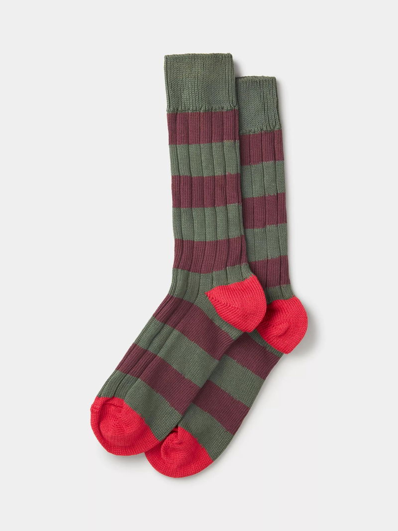 A medium-weight cotton sock with a striped design, the Rugby Striped Sock is just the thing to add a dash of colour and pattern to an otherwise understated outfit.