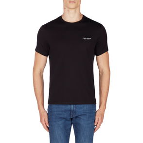 Axel Arigato charcoal cotton T-shirt. Ribbed crew-neck, dropped shoulders, felt and terry cotton logo appliqué. Slips on.