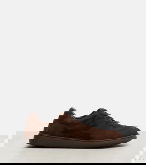 Axel Arigato suede sneakers. Designer plaque at padded tongue, panelled, designer-stamped side and heel, padded heel, perforated details, logo-embossed rubber midsole, gripped rubber sole, round toe.