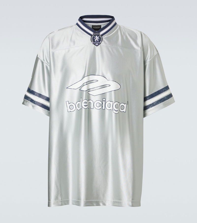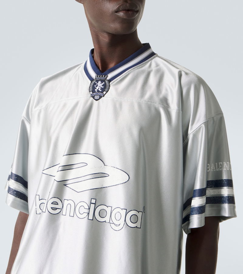 Balenciaga has evolved from the heartbeat of Paris to become one of the world’s most influential brands. Made from metallic-effect jersey, this T-shirt is a football-inspired style with the brand's iconic 3B Sports Icon logo as its focal point.