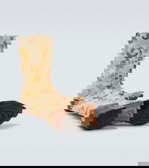 Balenciaga stretch-knit sneakers. Sculpted sole measures approximately 2 inches/ 50mm. Ribbed cuff, designer-stamped side, logo-embossed rubber heel and toe, textured rubber midsole, rubber sole, round toe. Pull-on.