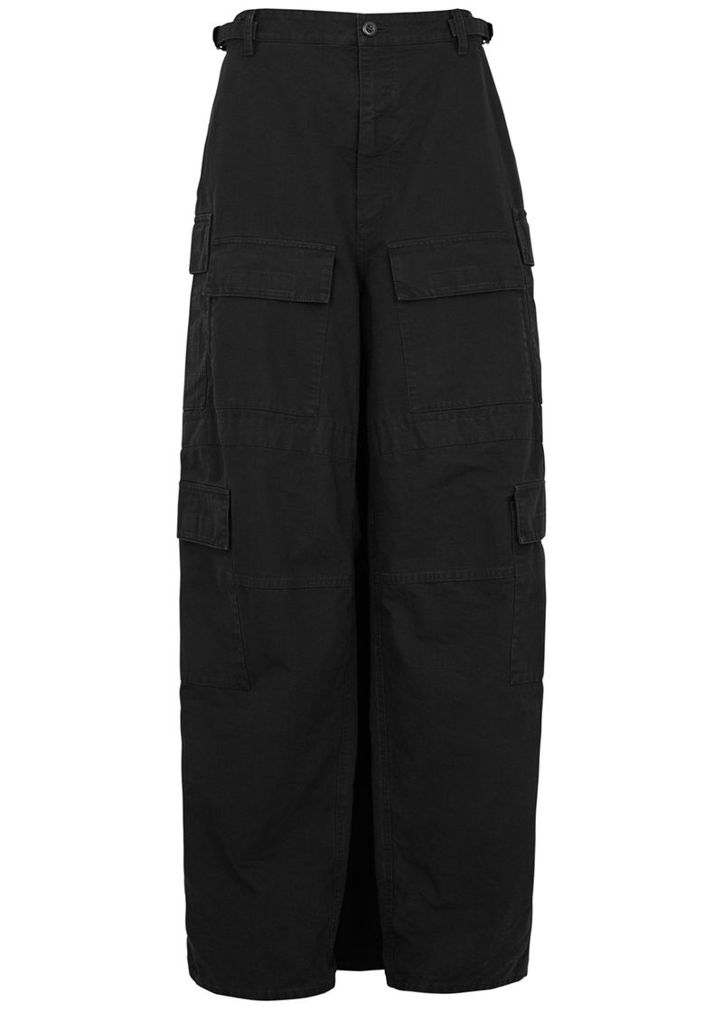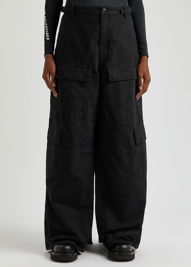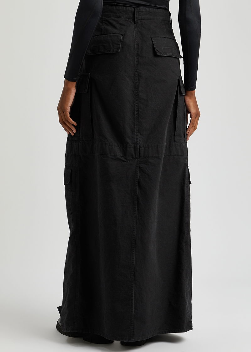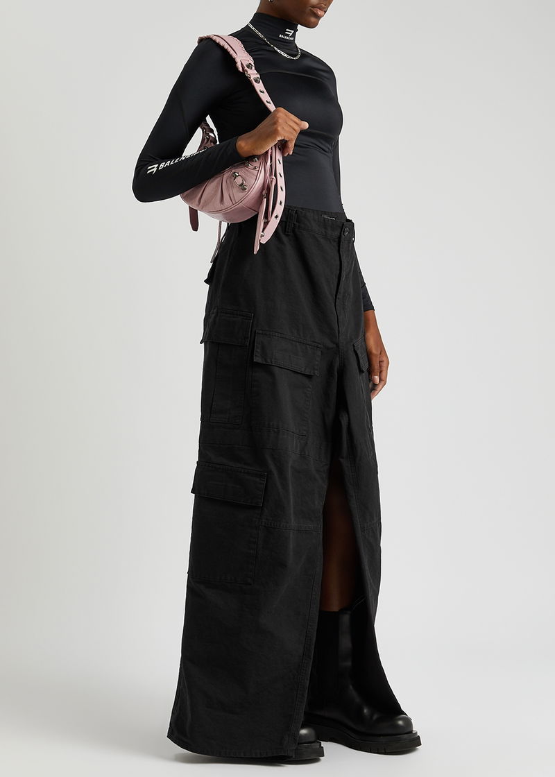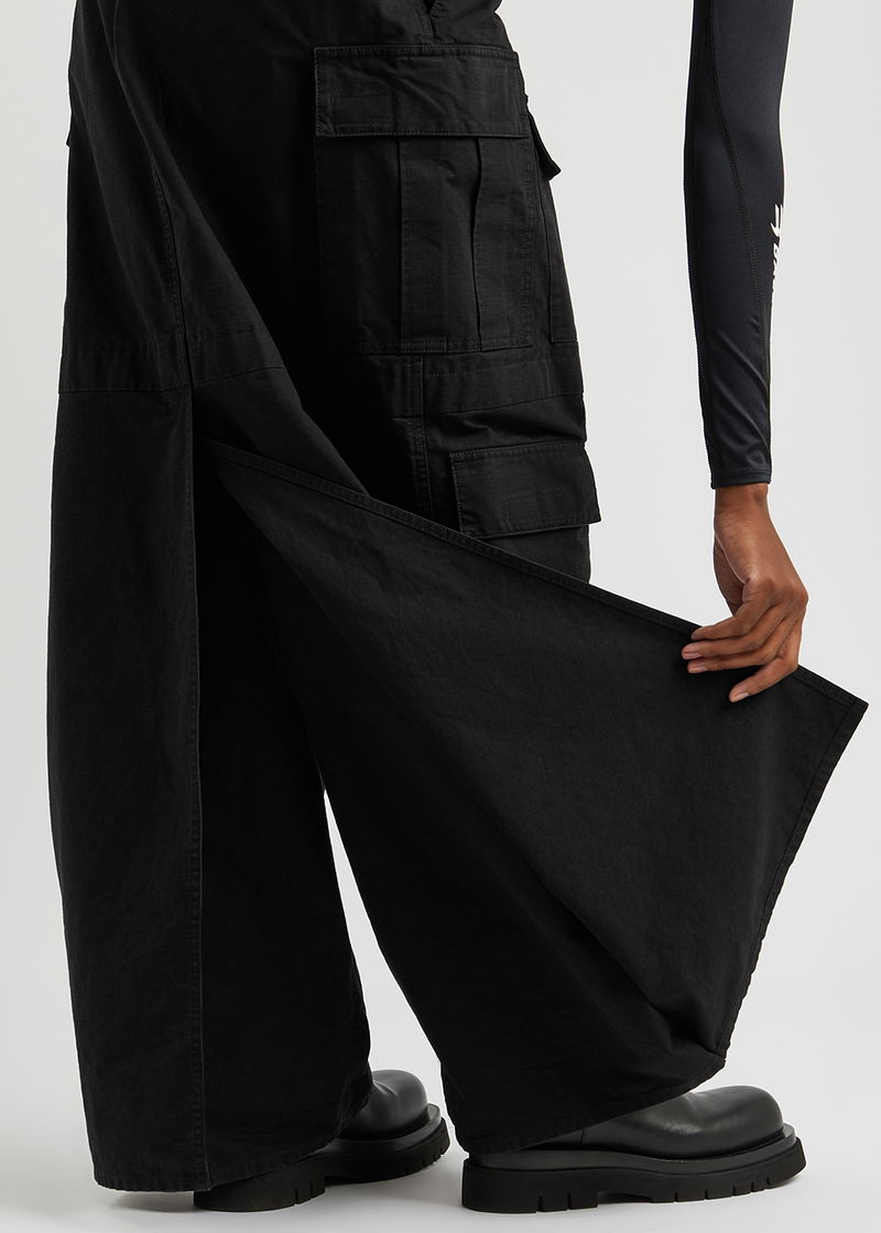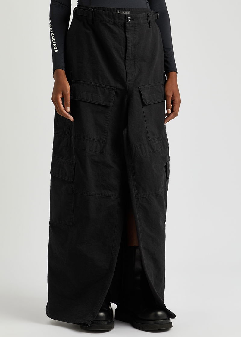 Hybrid designs and oversized proportions have a become a signature of Demna’s tenure at Balenciaga. Designed to be styled multiple ways, this full-length cotton skirt is layered with wide-leg trousers at the front allowing them to also be worn as such.
