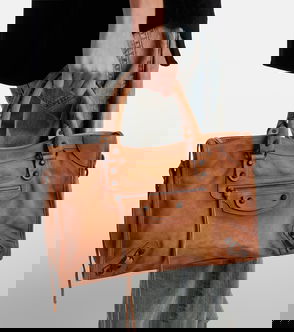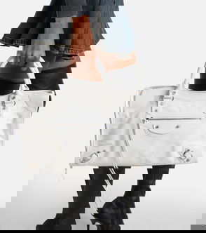 Demna Gvasalia’s ongoing reflection on consumer culture is realised in Balenciaga's black Barbes tote bag – a reworking of the coverted Bazaar style launched in 2016. Crafted in Italy from tactile leather, it’s shaped with striped inserts to resemble a classic barcode, accented with a small gold-foil logo and fitted with a zipped pocket at the organic-cotton canvas lining. Carry it either by hand or over the shoulder via the top handles.