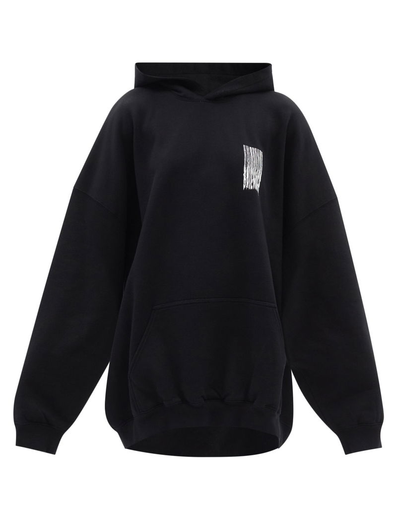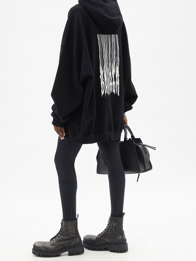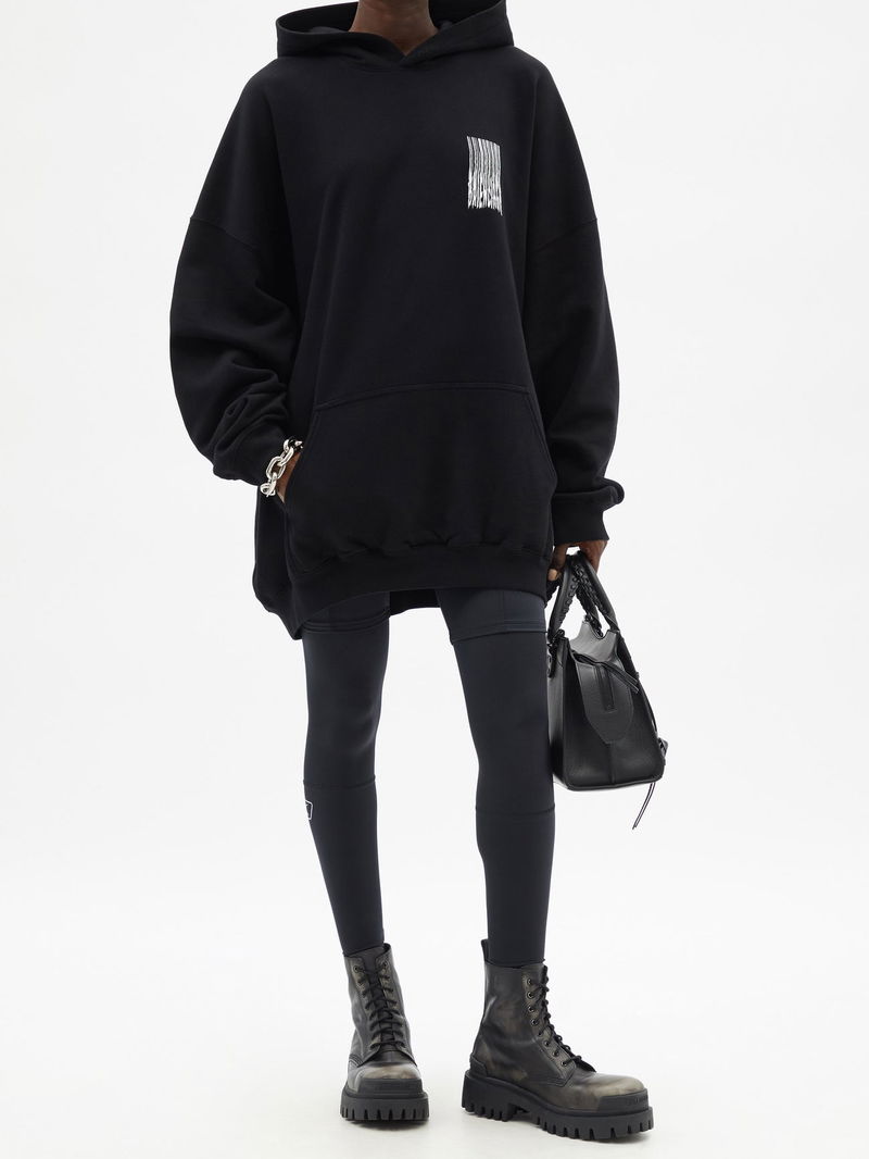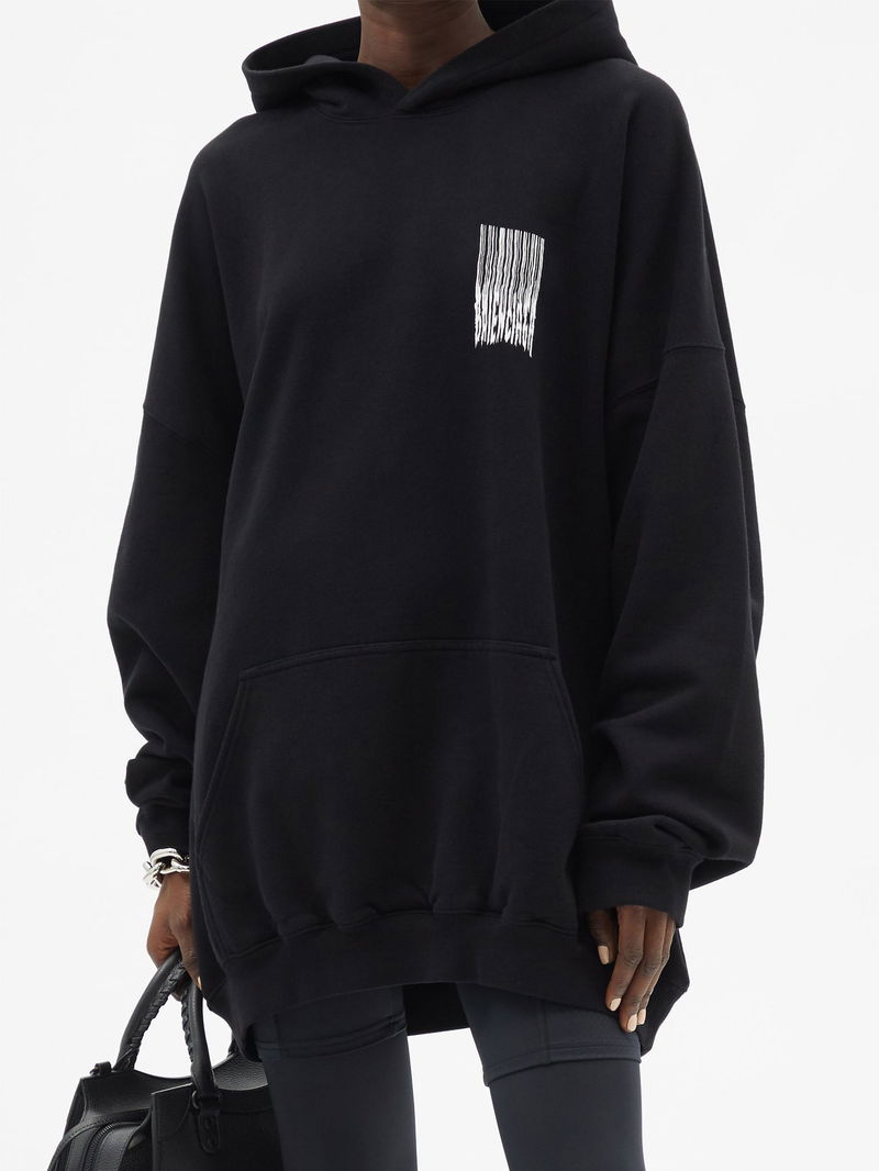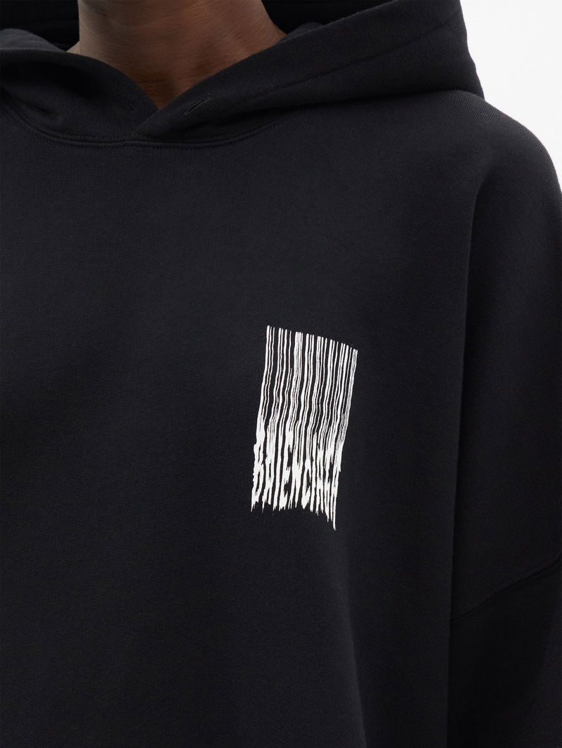 Demna Gvasalia has long held an irreverence for corporate branding showcased through Balenciaga’s black hooded sweatshirt, which is printed with an abstract barcode print. It’s crafted from soft cotton jersey to an oversized silhouette with dropped shoulders, a kangaroo pouch and ribbed edges. Wear them with leggings and chunky boots for a rebellious note.