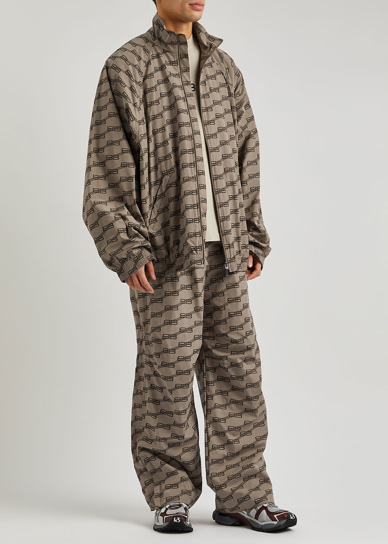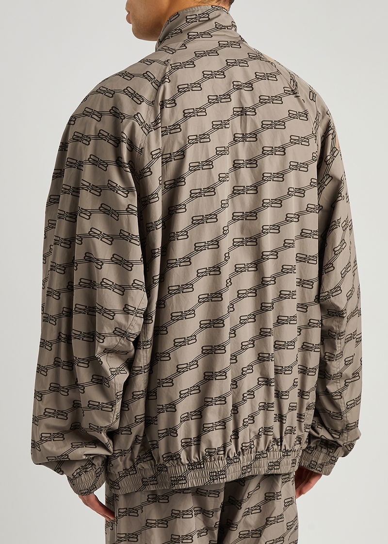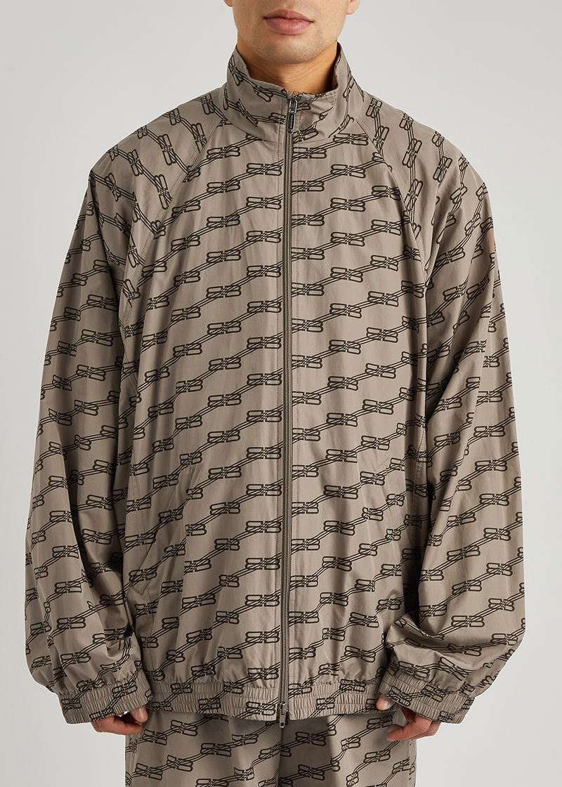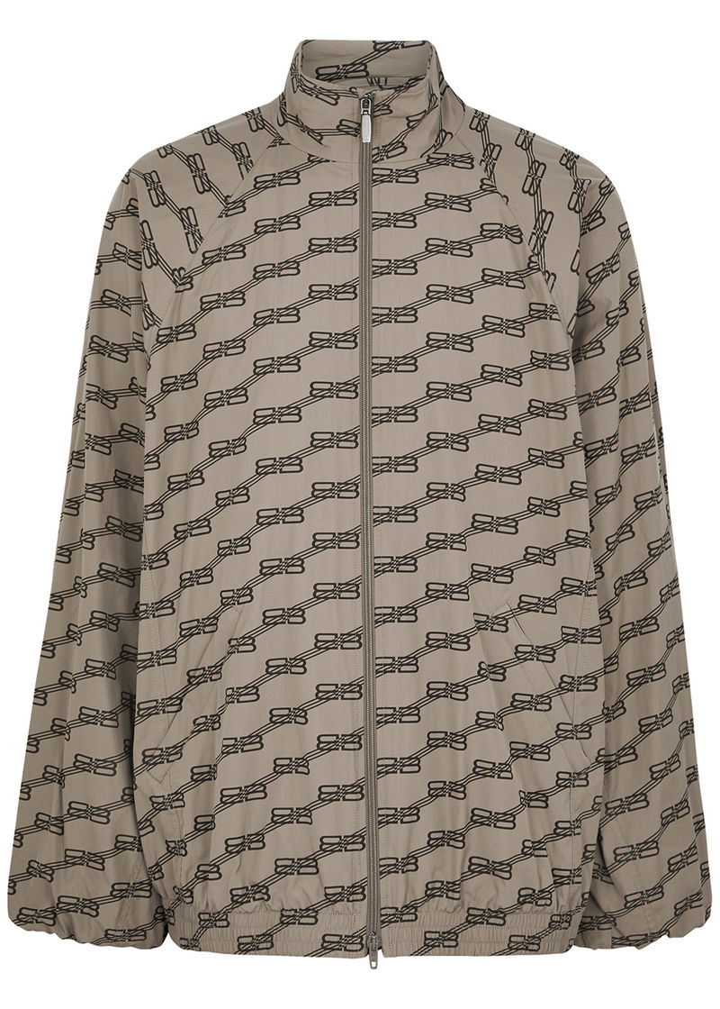This monogrammed track jacket from Balenciaga is giving a serious 90s vibe. Cloaked with the label’s BB pattern, this retro sports-inspired style is made from cotton and is designed to an oversized, high-neck silhouette.