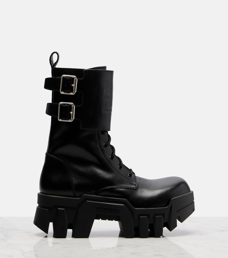 The chunky silhouette of the Bulldozer combat boots from Balenciaga elevates and empowers. Made in Italy from smooth leather, this design features thick-toothed 25mm platform rubber soles, lace-up vamps, inner zip, and pull-on loops.