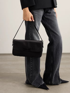 Balenciaga's 'Carrie' bag is modeled on vintage bowling styles. Topped with sleek handles threaded with a detachable luggage tag, it's made from textured-leather and has an intentionally slouchy front pocket. It'll fit your phone, wallet and sunglasses.