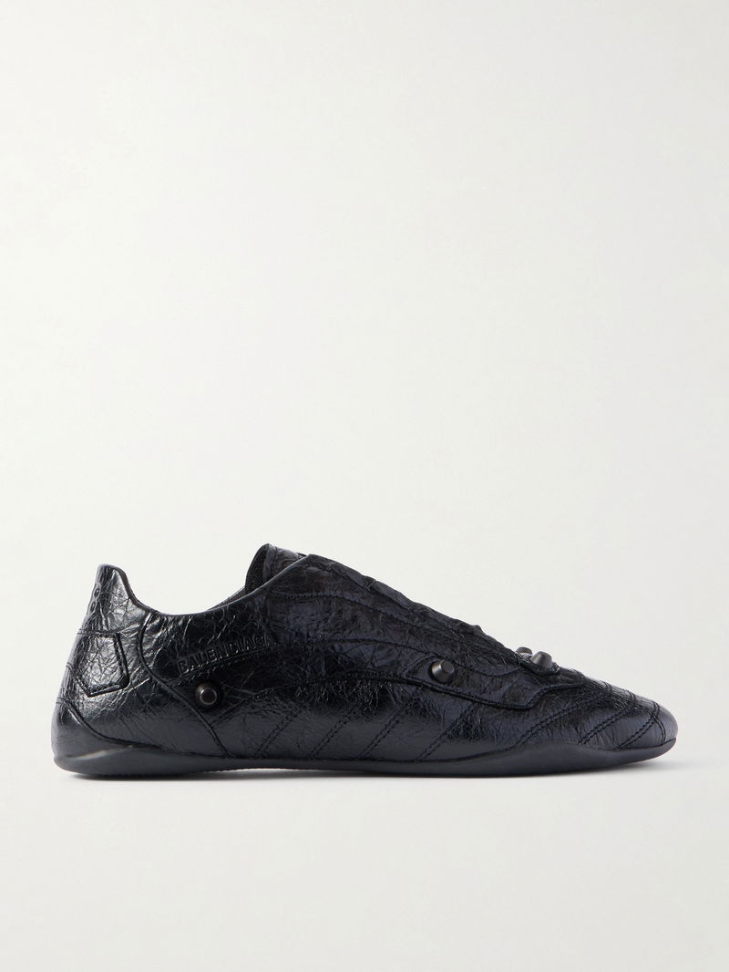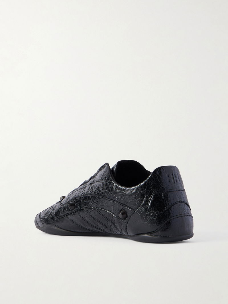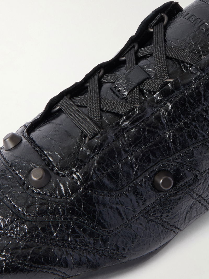 City Studded Crinkled-Leather Sneakers