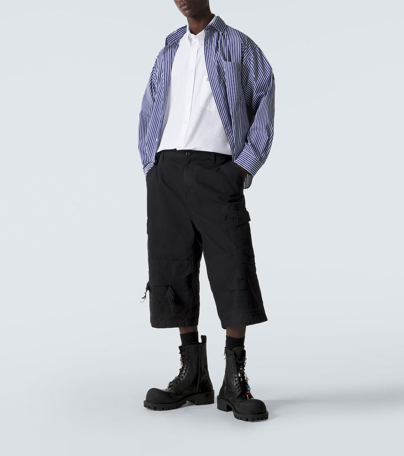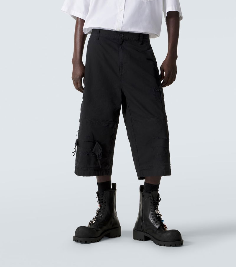 Infuse your wardrobe with utilitarian-inspired styles, like these shorts from Balenciaga. Made from durable cotton, this laid-back style features large cargo pockets and distressed details.