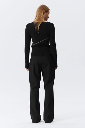 Balenciaga's sweater was styled back-to-front on the runway, so the zip trails down the nape of the neck. It's knitted from cotton in the label's signature relaxed proportions.