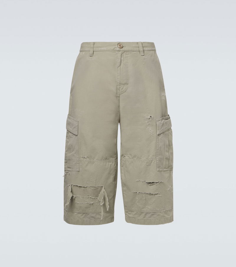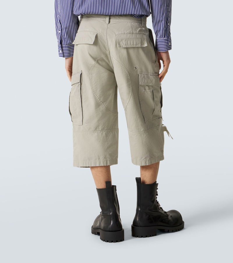 These Balenciaga cropped cargo pants are crafted from cotton, combining relaxed comfort with a modern, utility-inspired silhouette. The cropped length and signature cargo detailing add an effortless, fashion-forward edge, making them a versatile piece for elevated everyday dressing.