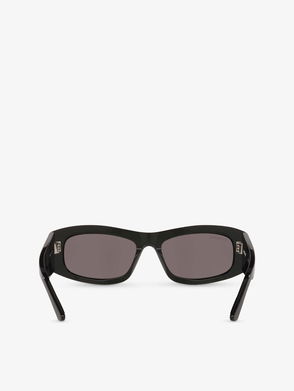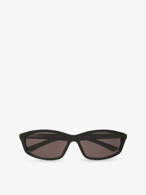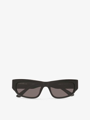 These black sunglasses capture the brooding, after-dark mood of Demna Gvasalia's Balenciaga. They're crafted in Italy with an angular frame set with grey tinted lenses offering high sun protection, then accented by glittering crystals which form logos on the acetate arms.